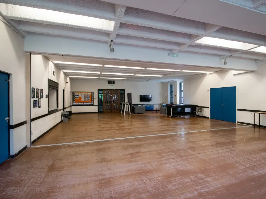 The Downstairs Hall is a large, versatile space with a durable floor, plenty of natural light and direct access to the garden. It works well for parties, classes, community groups and events that need room to move. The hall can be set up with tables and chairs, or left open for activities, and the adjoining doors lead through to the kitchen and extra rooms if needed. It’s a practical, flexible space that suits a wide range of bookings.