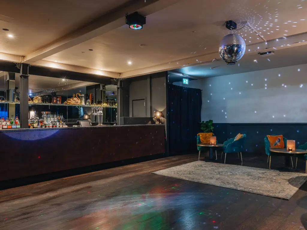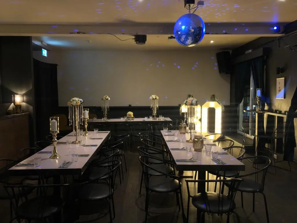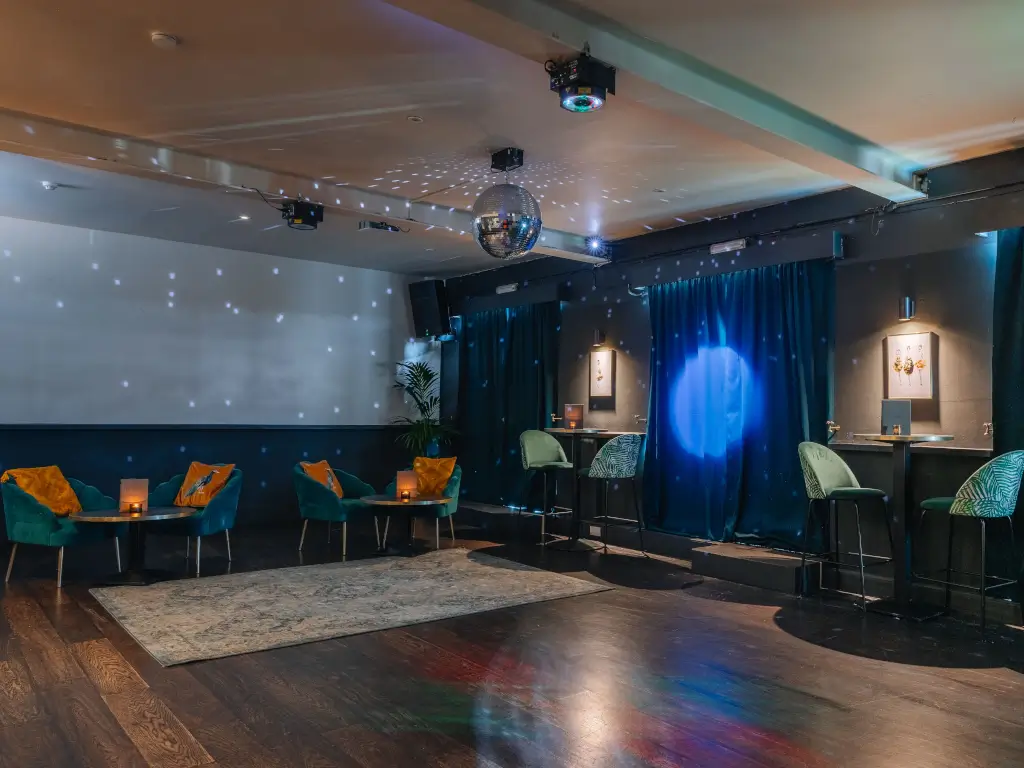The Gallery at The Exhibit is a vibrant and versatile private event space designed for celebrations and social gatherings. With a standing capacity of 100 and seating for up to 50 guests, it features an open, indoor-outdoor feel thanks to large sliding doors that lead onto a private balcony. The space comes fully equipped with a private bar, DJ booth, sound system, disco ball, party lighting, projector, and air conditioning—making it an ideal setting for everything from private dinners and networking events to lively parties and receptions.
