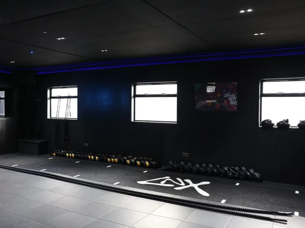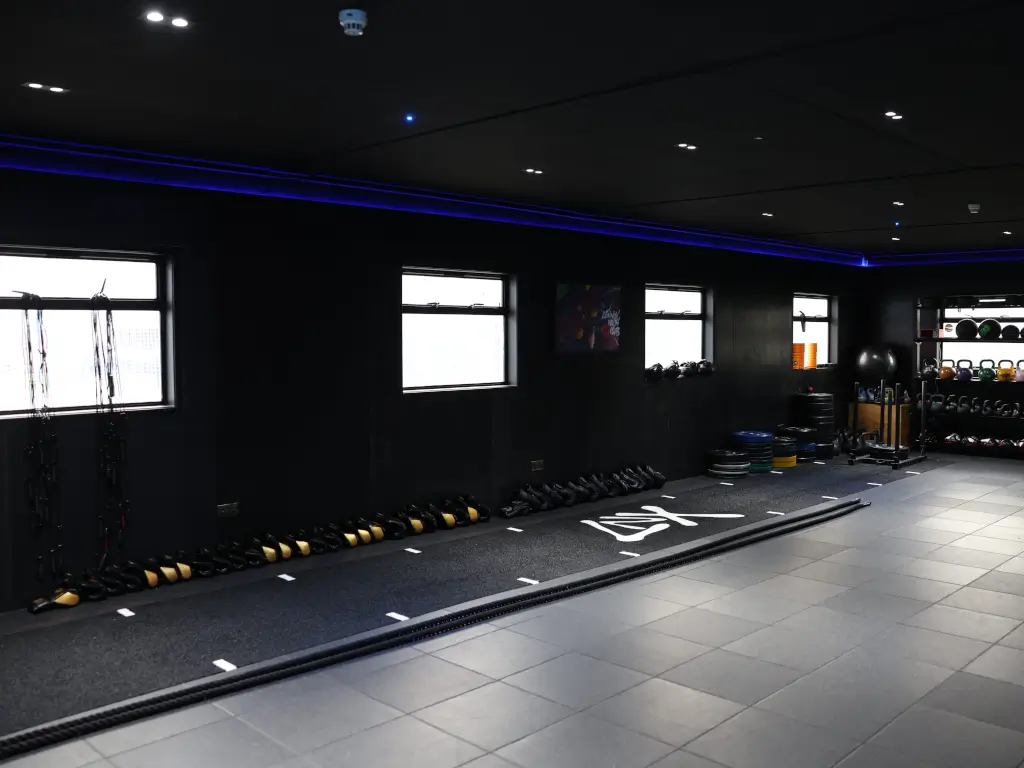 The Gym is a well equipped space that can be used. Equipment includes: 12 metre Sterling turf Astro track, Sled, Battle rope, Bumper plates, squat and bench press rack with integrated cable machine, Dumbbells 0-30kg, Kettle bells ranging from 4kg - 28kg, Medicine balls, large and small boxing bags from ringside, boxing gloves and pads, skipping ropes and other small accessories, resistance bands, stretch mats, recovery equipment including Theragun. The space also benefits from an onsite defibrillator.