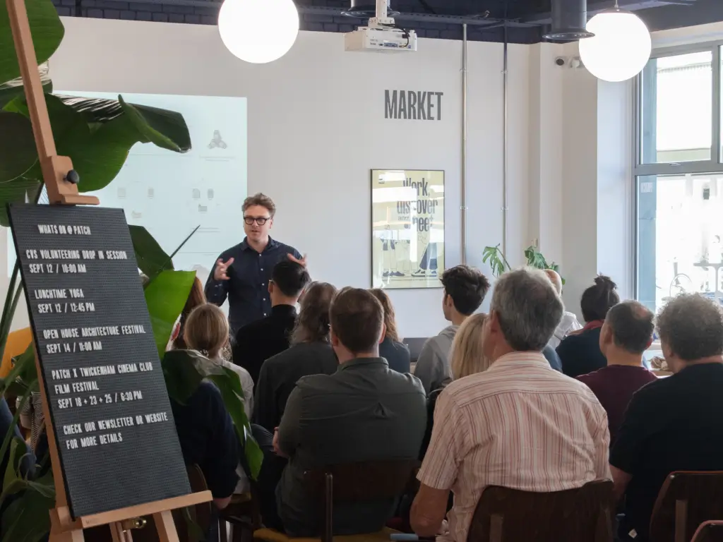 Combined offering of Patch Market, our flexible events & cafe-bar space, and Patch Academy, our glass-fronted studio space. It's great for networking events, screenings, panel discussions, live performances and a capacity of 90 standing. The space is versatile and can be adjusted according to your needs.