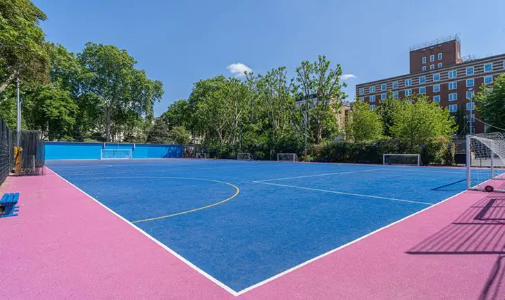 This outdoor Astro pitch is well kept, full size for a 9-aside game or can be split into 5-aside pitches and is floodlit. A perfect space for football matches, casual games and training.
