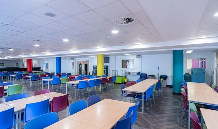 Pimlico Academy's spacious Dining Hall has large windows looking out onto the playground and can cater for a large number of people with access to tables and chairs. This space could cater for a variety of activities including talks or social gatherings.