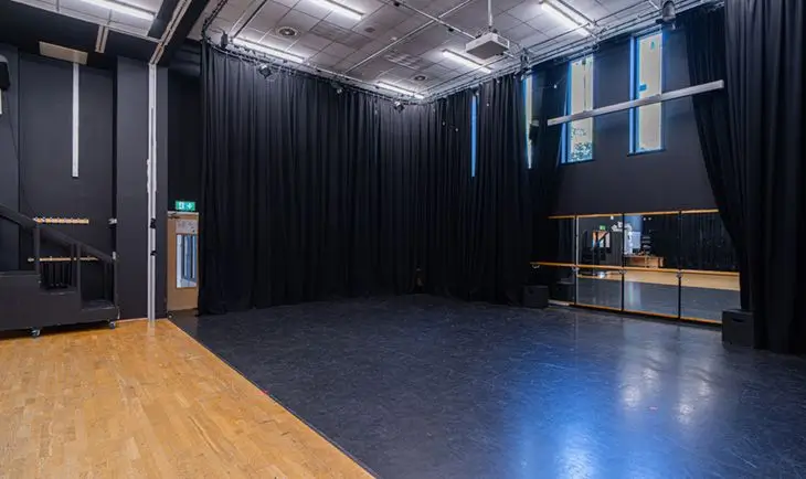 The drama studio is a great space for drama groups to rehearse with access to a projector and black out curtains. Or could be used for talks or religious gatherings, with access to up to 80 chairs, it is a versatile space with high ceilings.