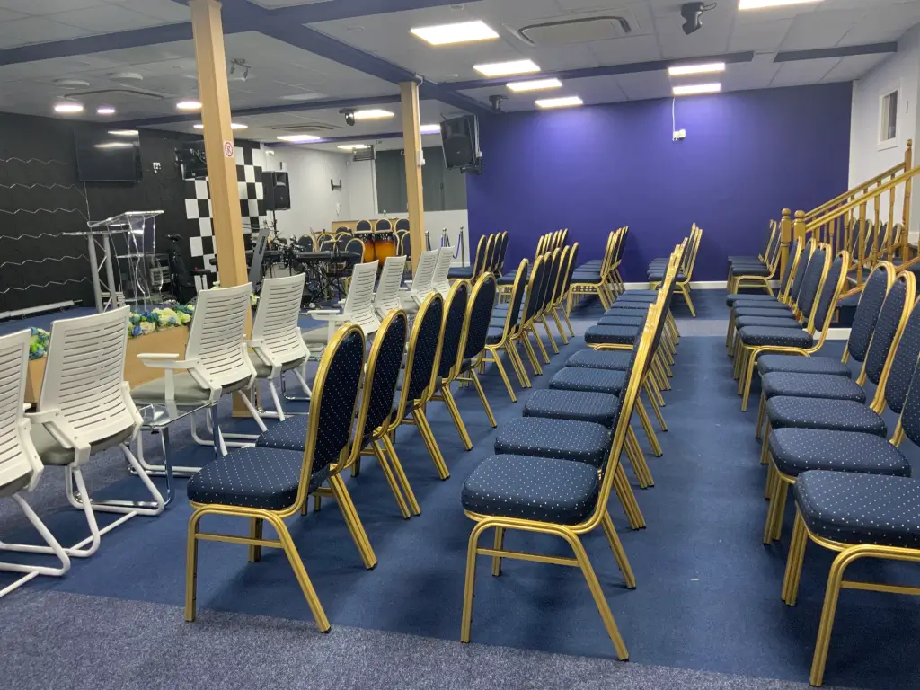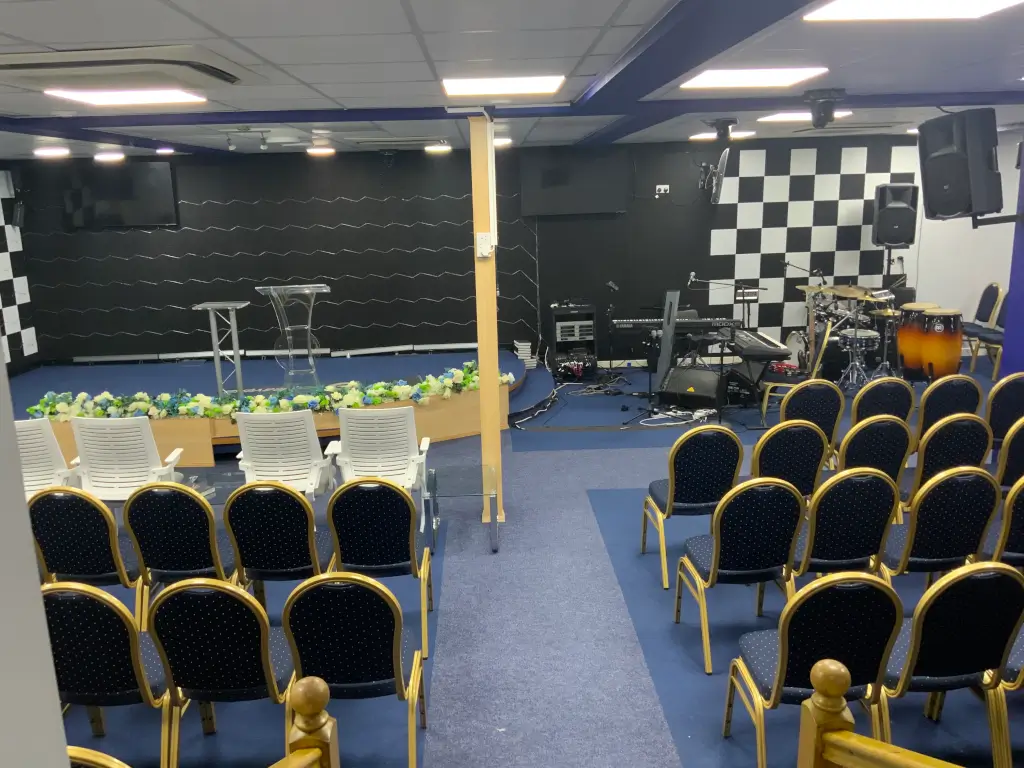 A large, spacious, multi-use hall, fitted with a stage. With a capacity of 150 people, the hall also offers a kitchen facility on request, as it does with technical equipment such as TVs, microphones, and sound systems.