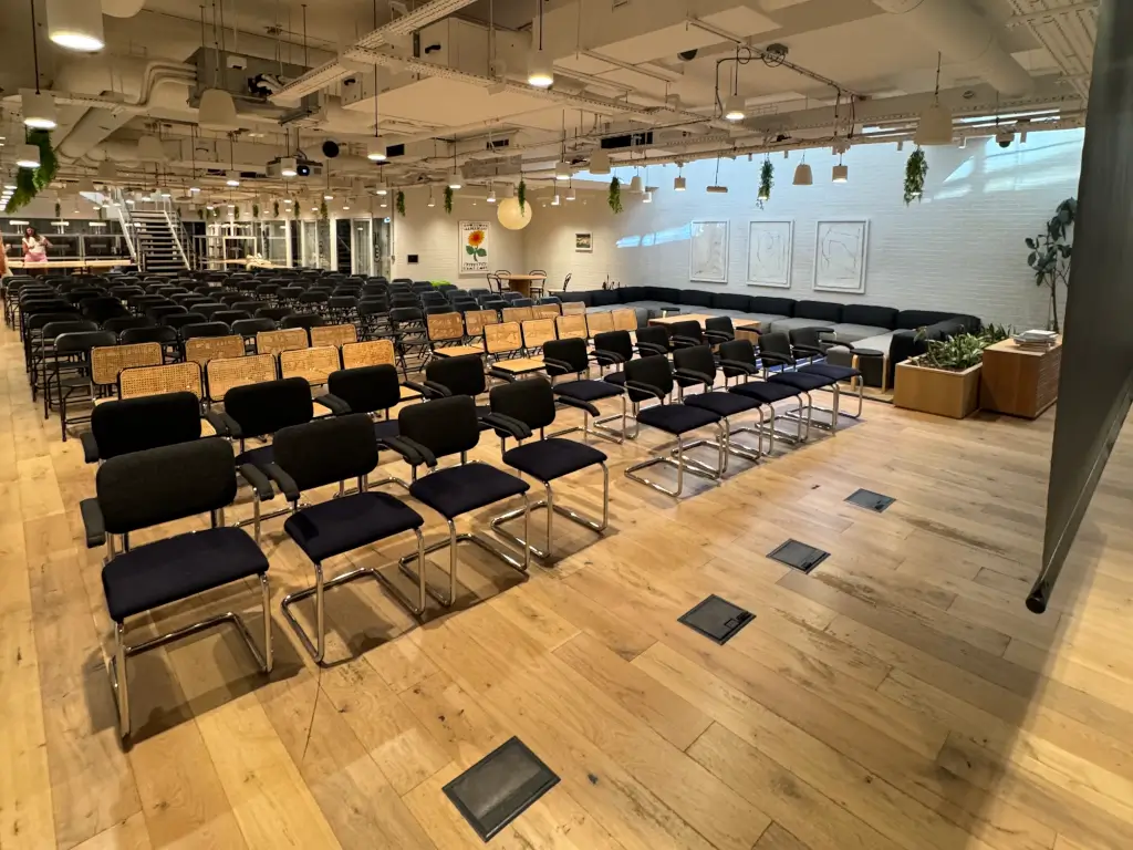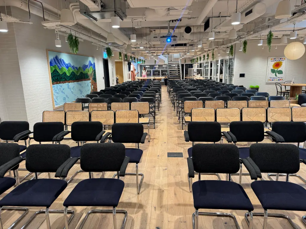 A versatile event space designed to host up to 200 guests in theatre-style seating or 300 standing. Its thoughtful layout, complete with five dedicated rooms and private toilets, supports everything from high-impact presentations to focused group work.