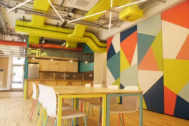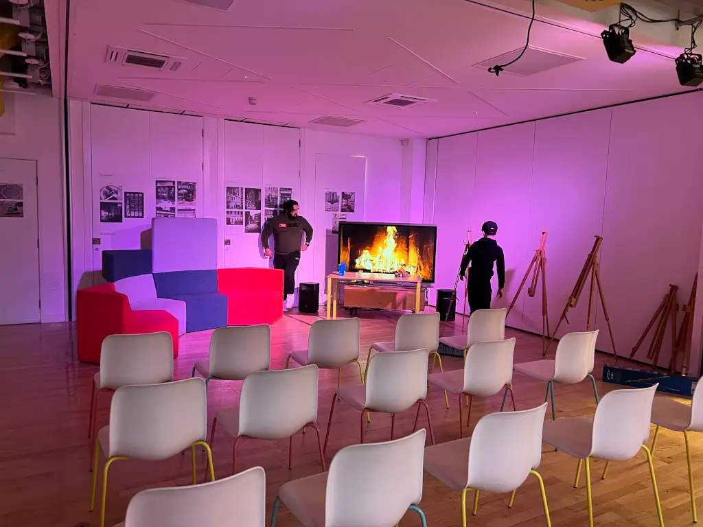This is a multi purpose flexi space that can be 3/2/1 room. This first is a dance space, has the capacity for around 15 people. The second is a meeting Room that can hold around 10 people, the third is opening the whole space to accommodate events, this can hold up to 60 people.