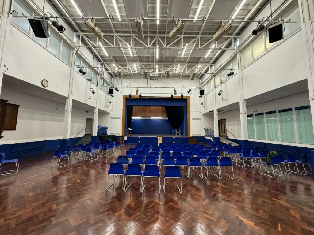 The Main Hall at Southgate School is a spacious and well-equipped venue, ideal for a variety of events. It features a stage, making it perfect for performances, presentations, and ceremonies. The hall is equipped with a modern projector and sound system and with 200 chairs and tables available for use, the space can be arranged to suit the needs of different events.
