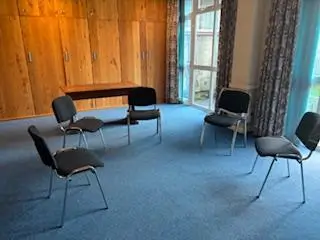 A flexible meeting room that can accommodate up to 15 people and be set up as you wish. Garden access and floor to ceiling windows on one side of the room. Easy toilet access. No step access.