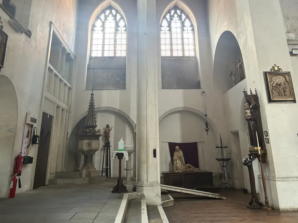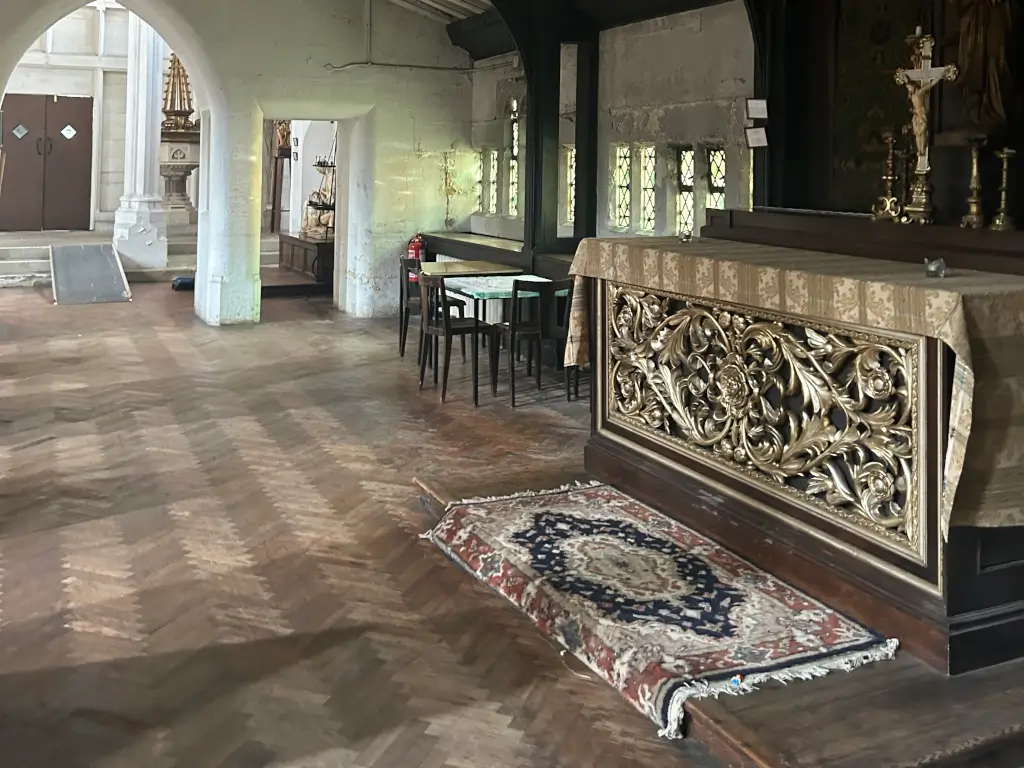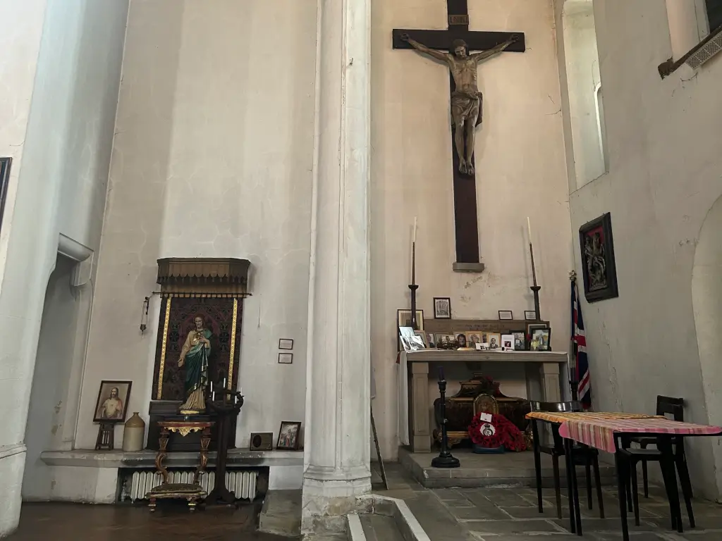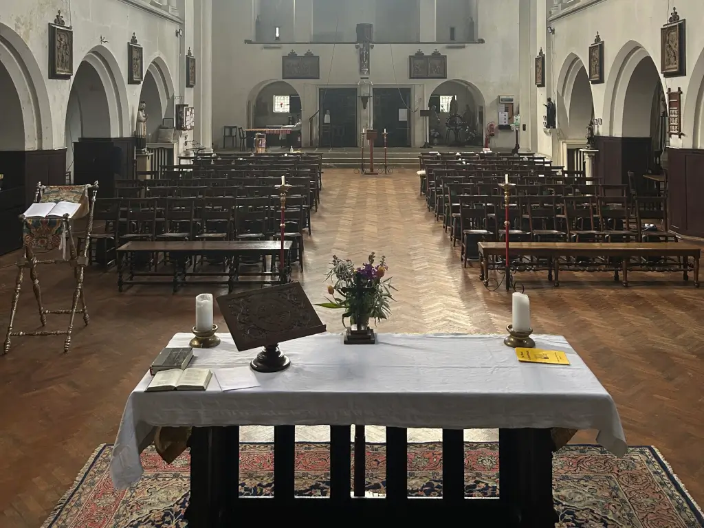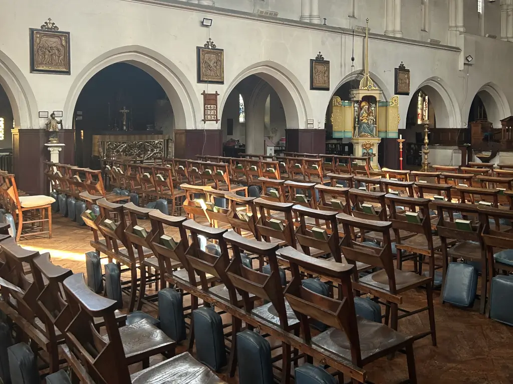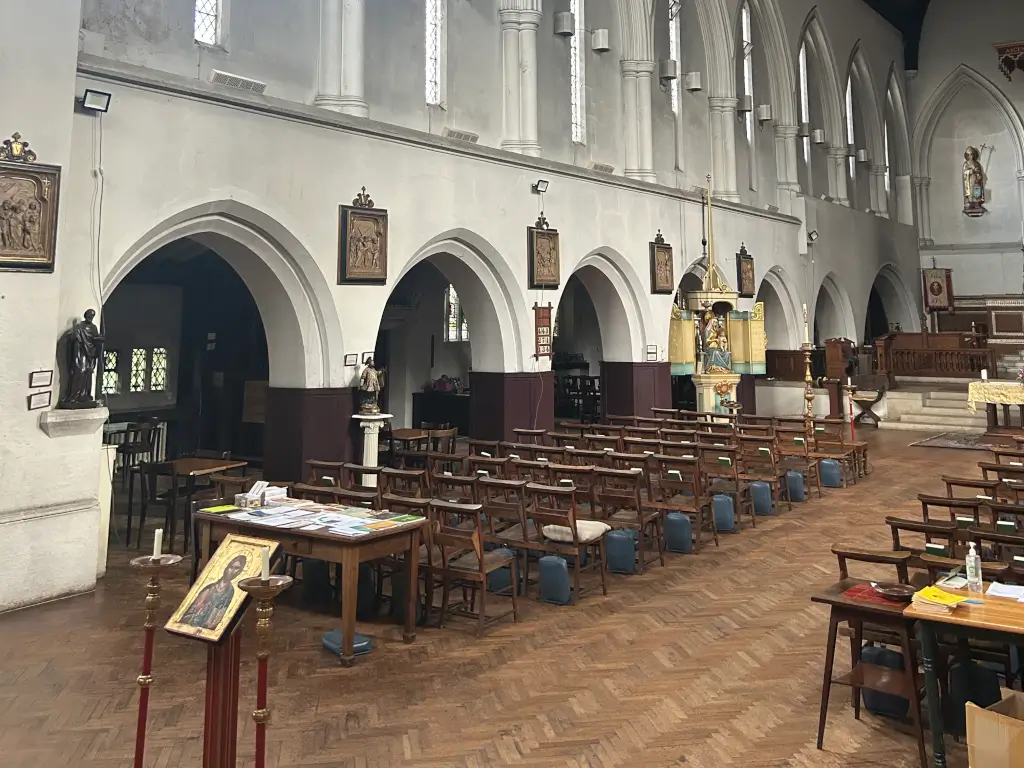 A large Church on Archway road that reflects the arts and crafts movement. It has a large tunnel vault extedning to the high altar, with a striking and unique quality. Features stained glass windows.