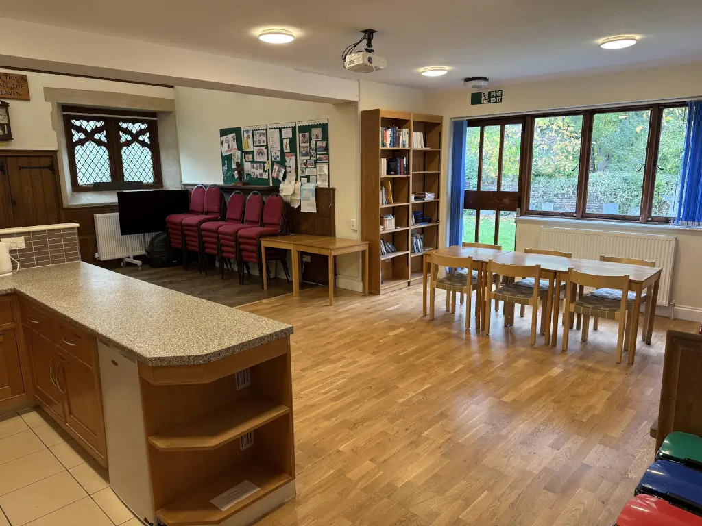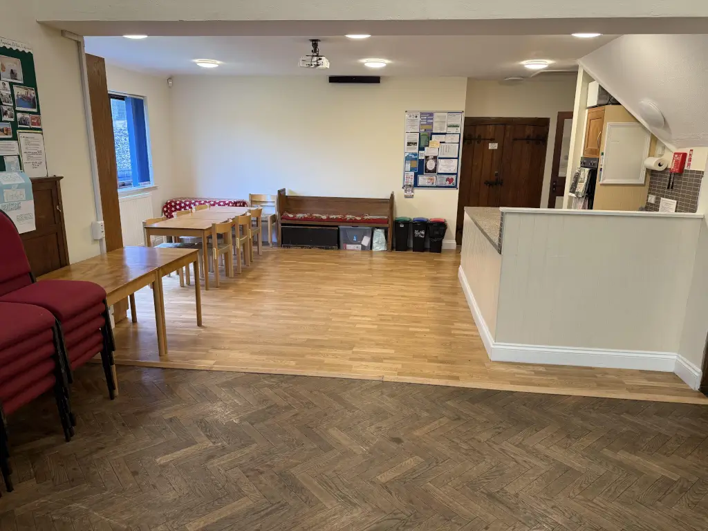 A small, versatile hall with adjoining kitchenette, ideal for community events and meetings. The space can be used either with or without chairs and tables.