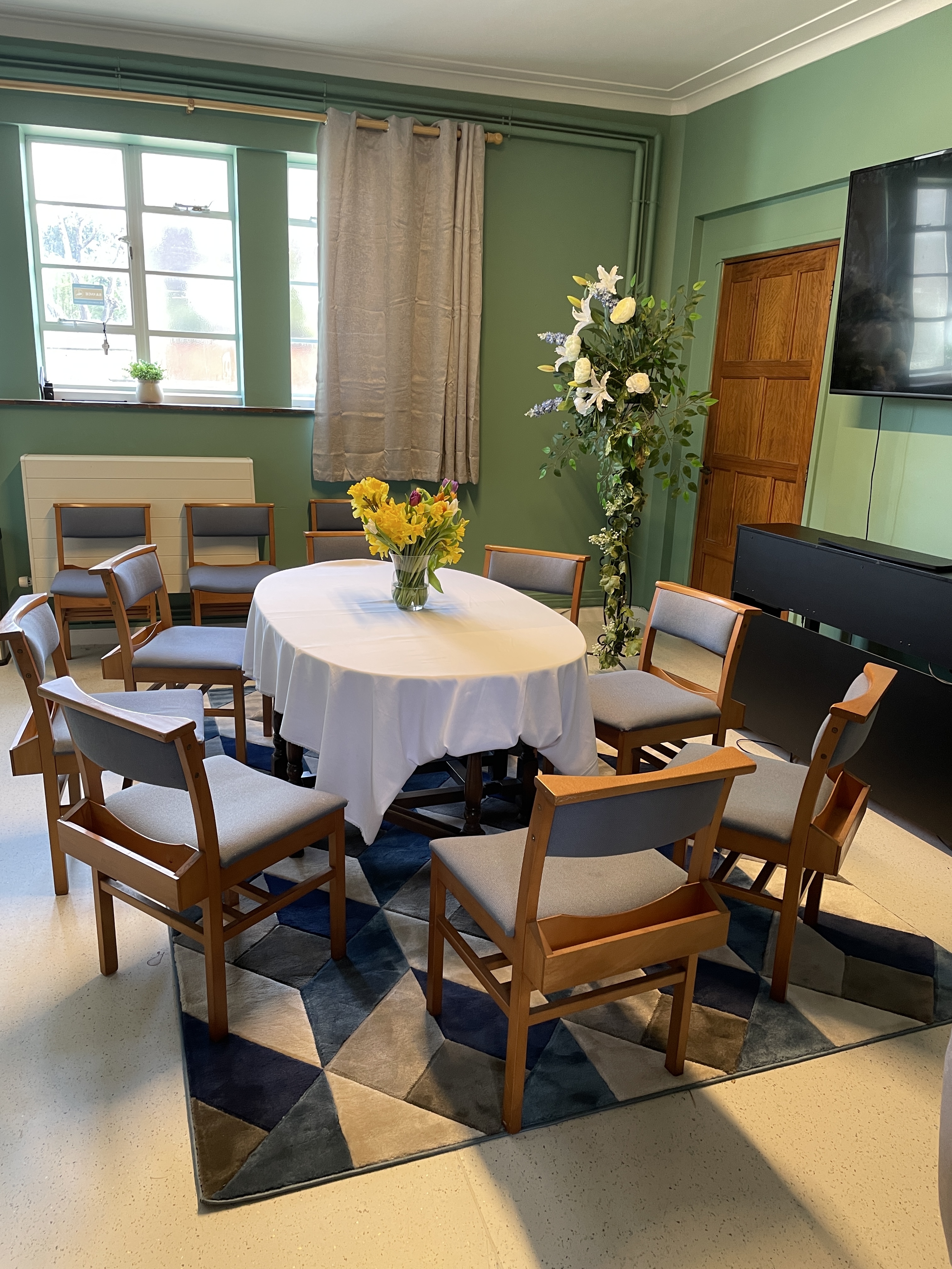 - Comfortable Seating: Chairs arranged for group discussions, workshops, or musical practice.