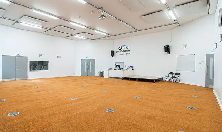 The Lecture Hall is a small auditorium designed to provide an optimal learning environment. It features seating for up to 100 people. This space is ideal for lectures, presentations, religious services or seminars, offering a professional and comfortable setting. Sound system, lighting and a projector can be used upon request.