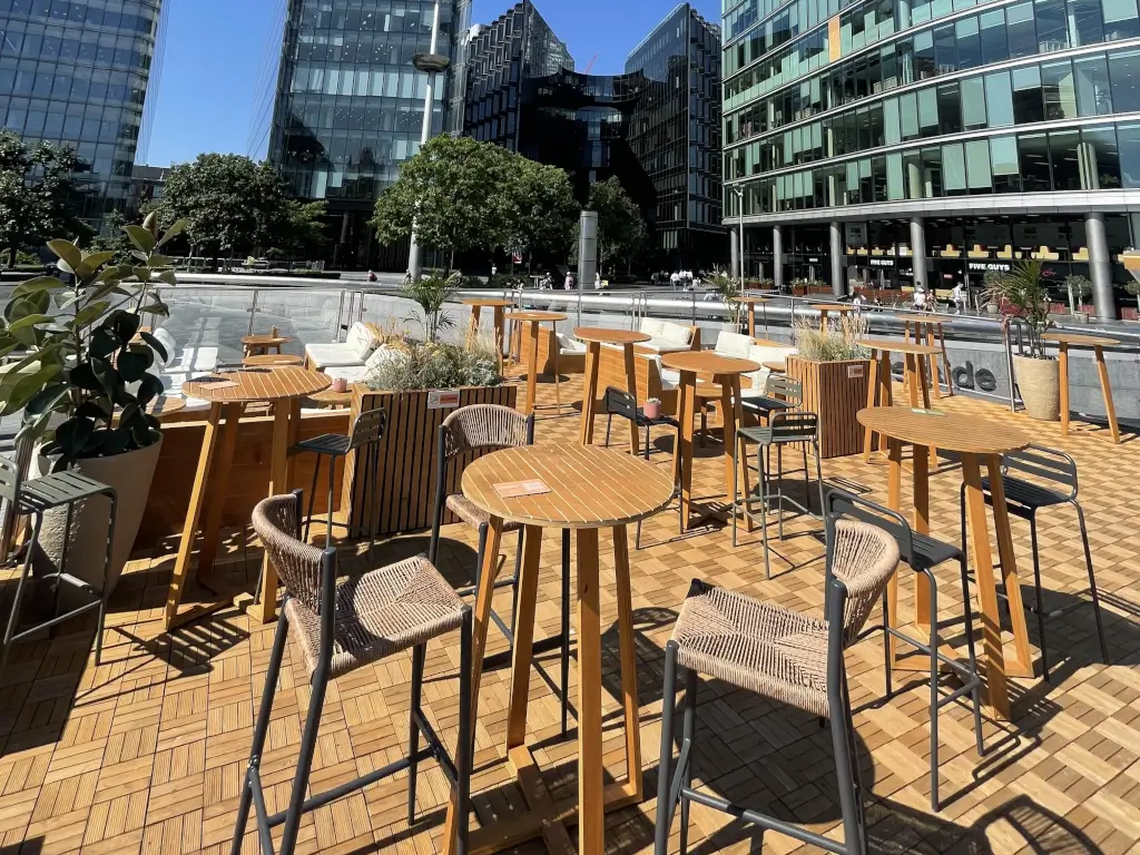 Had a table for 8 pers. to watch the Wimbledon finale. We were placed perfectly to follow the match comfortable; we had pre-ordered some of the food & drinks and they arrived on time. Pimm’s was great & so was the food. Quick service with QR code scan and staff were friendly. They had complimentary fans to keep us cool until the sun set behind the building nearby. I would do it again.