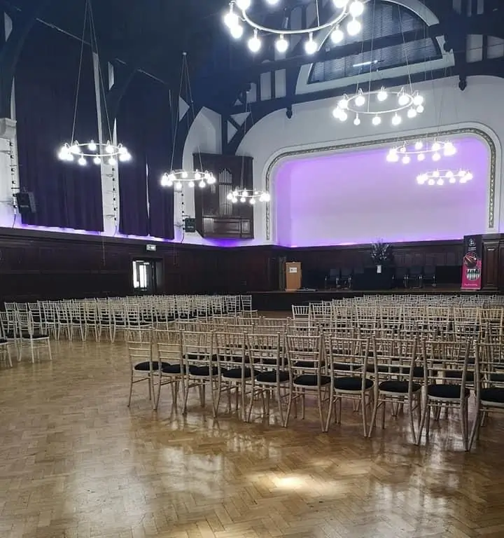 The Grand Hall is a beautiful period hall, with seating for up to 300 people banquet style or 620 theatre style complete with a raised stage, vaulted ceiling, beams, wooden panelling and AV facilities, which provides a real sense of occasion. The Grand Hall is a fully self-contained venue, accessed via a separate main entrance, with an ante-room. Its reception opens out onto attractive parkland which is ideal for photographic opportunities! The external courtyard boasts a beautiful clock tower at the centre, surrounded by a secure landscaped and paved area. Please note that for any weddings or Bar/Bat Mitzvahs, a minimum of 12 hours is required to allow time for set up, access for caterers, cleaners, etc.