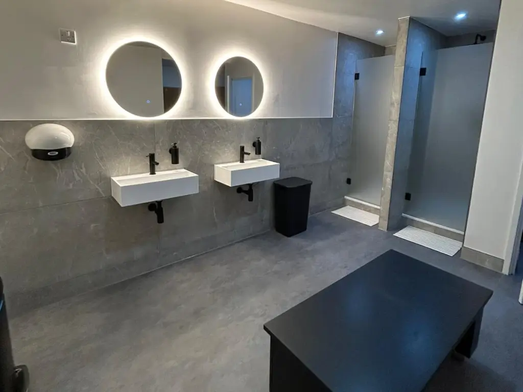 State of the art studio space offering a welcoming and modern design. It features two studio rooms, two changing room facilities, and a waiting room / reception area.