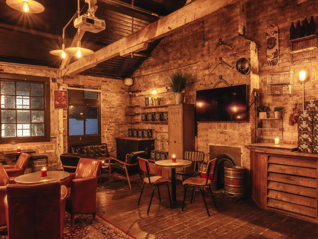 Wolfpack Queens Park is a converted garage with a private function room and urban décor, offering rotating craft beers, cocktails, and a laid-back, community vibe. With indoor and private hire space, it’s perfect for casual drinks or private events. Best for 150 guests.