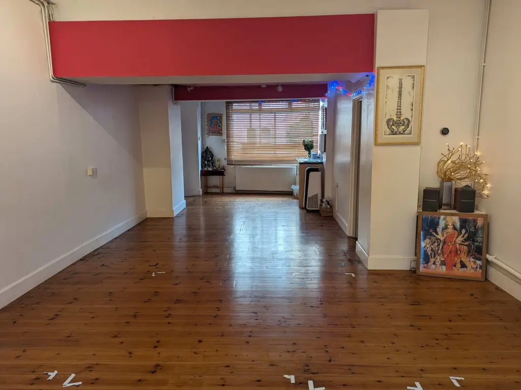 Hiring our studio gives you access to the main studio and front ante-room which has a private changing area. We have a full range of yoga equipment – mats, blocks, belts, cushions and bolsters available for use, access to wifi and speakers connected by cable/bluetooth. At the back is a well looked after walled garden with a picnic table, fruit trees and bike racks. You will also have access to a small kitchen for teas, coffees and food prep, and two unisex toilets.